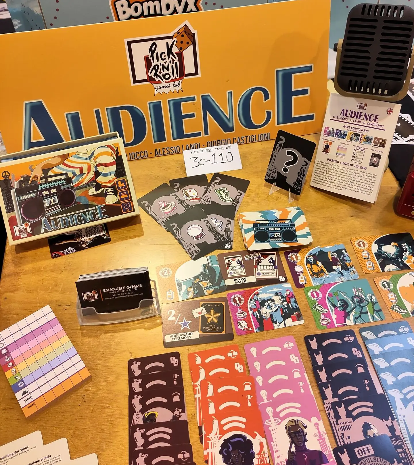 Pick 'N' Roll Games Lab. Binnen het uur kreeg ik antwoord van oprichter Emanuele en na wat enthousiaste mails heen en weer kwam hier net een pakket uit Milaan binnen. Emanuele was zo vriendelijk daar ook een demo exemplaar bij te bezorgen en dus is Audience vanaf vandaag niet alleen te koop, maar ook ter plaatse uit te proberen in de steeds groeiende verzameling demo-spellen!