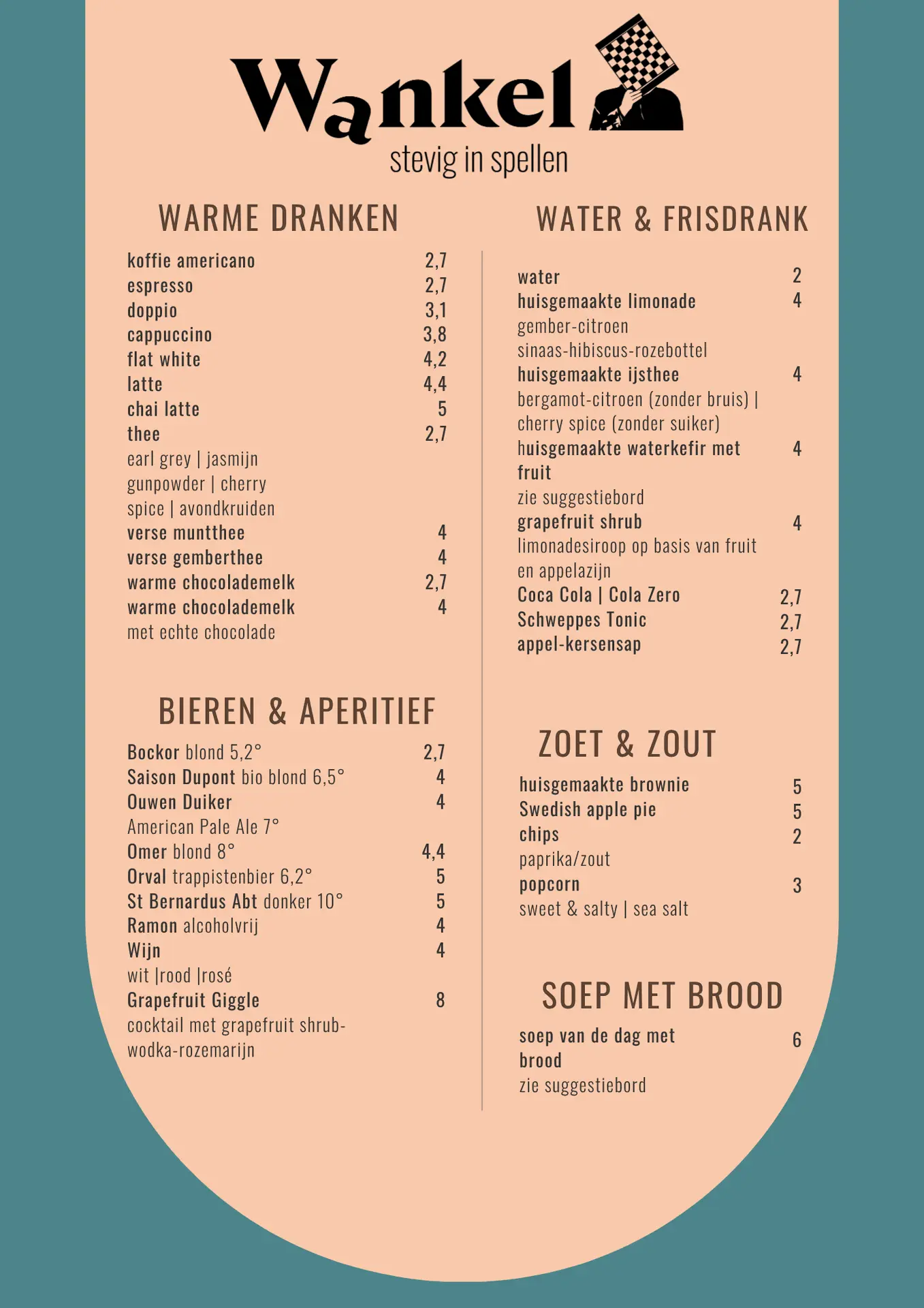 Wankel is ook een plaats voor lekkere koffie, verse soep en huisgemaakte limonades en gebakjes. Spelen mag, maar hoeft niet: spring gerust ook binnen voor je dagelijkse espresso of een gezellige babbel met vrienden.